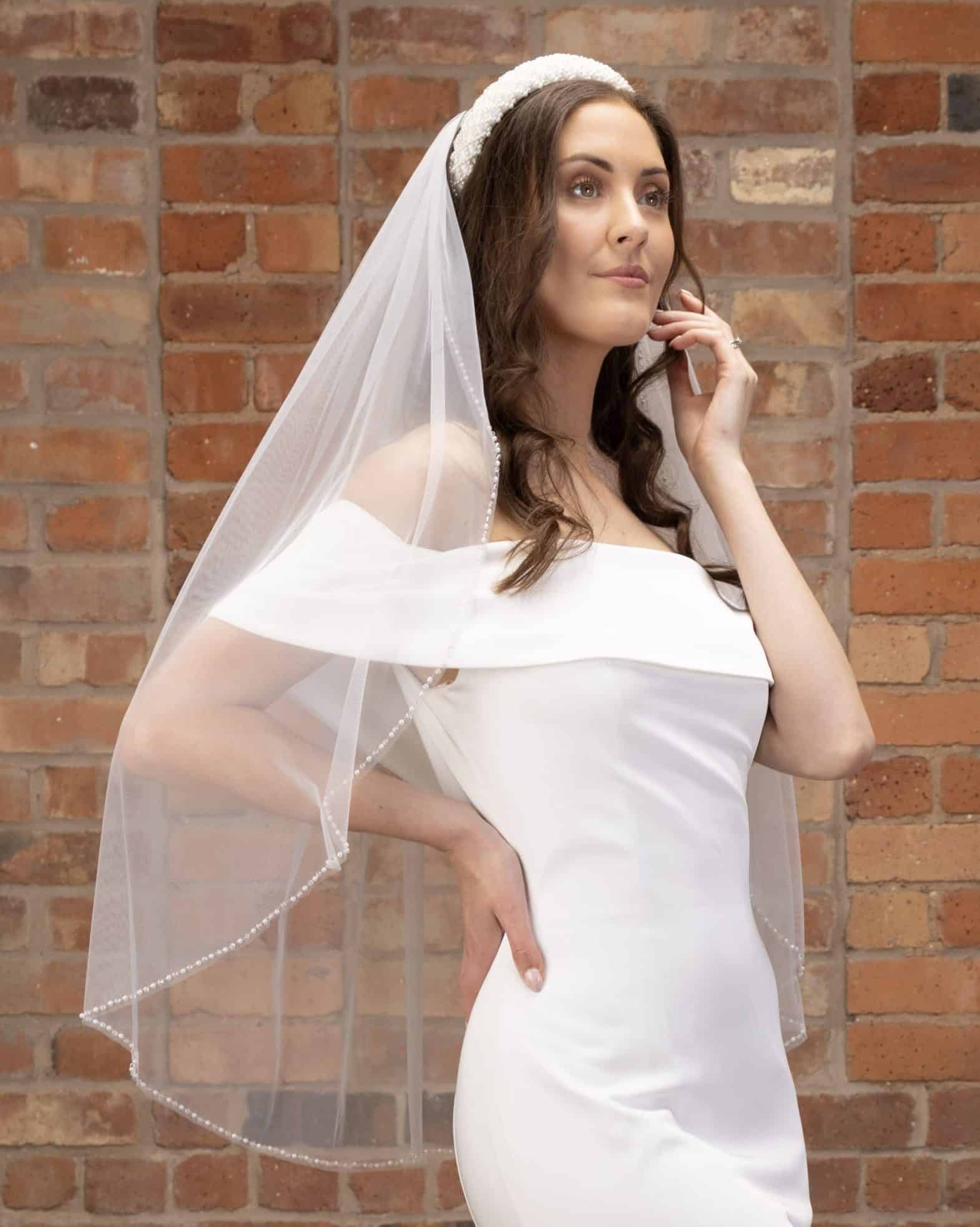 90cm Fingertip veil pearl and crystal edged veil – £65