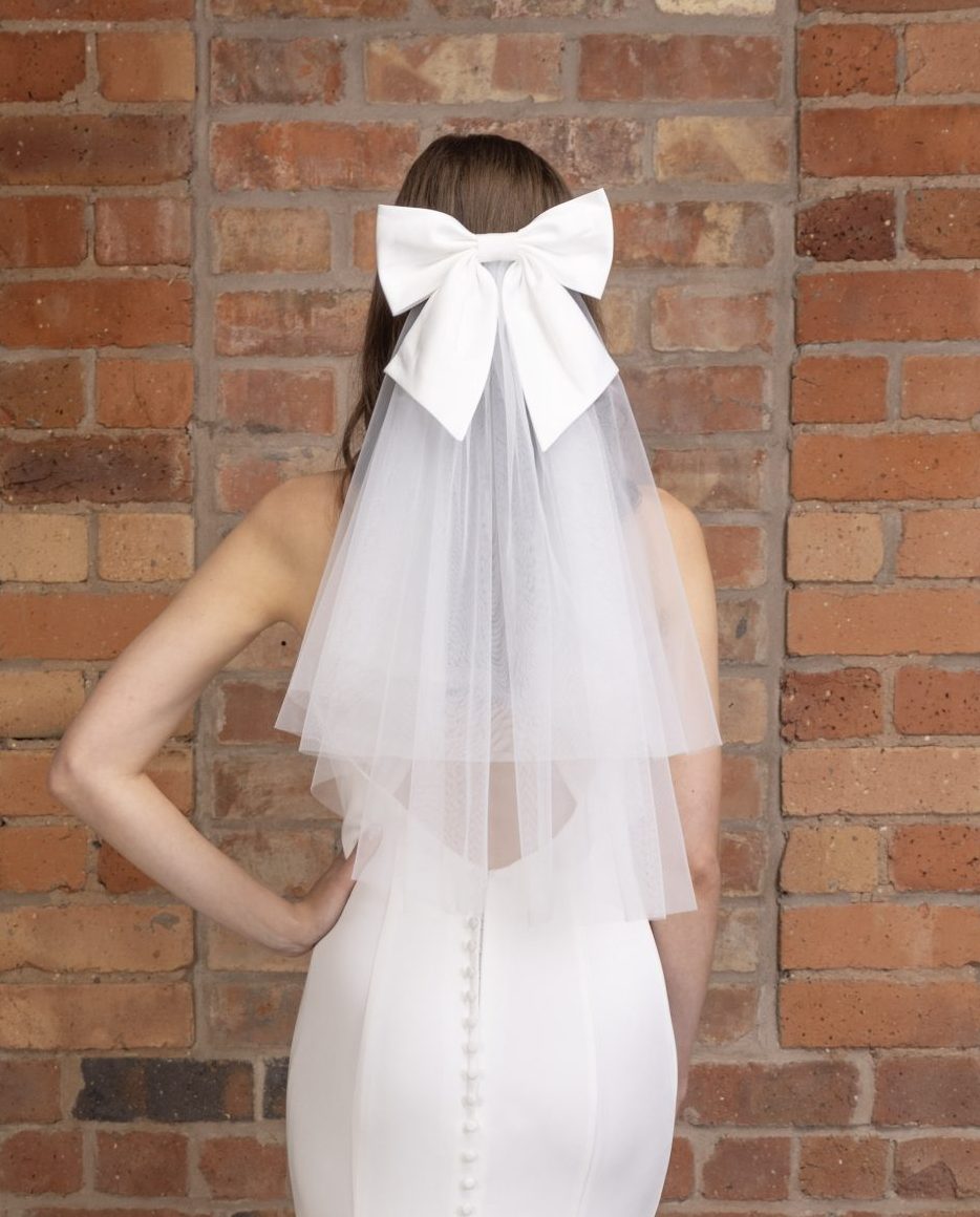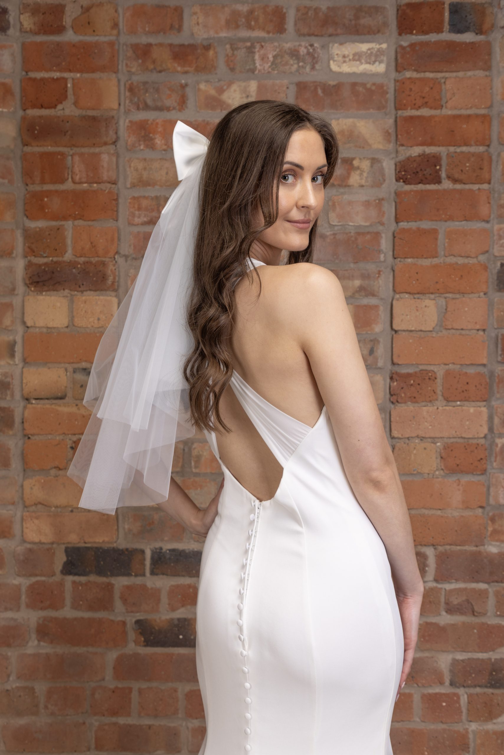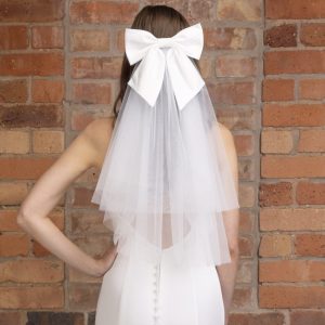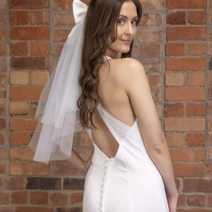 You’ll be amazed how such a small veil can make such a HUGE impact to your wedding outfit. It suits big satin ball gown, simple slip dresses and trouser/jumpsuits. It has layers to ensure there is fullness in the veil fabric and the bow is the perfect size. All Perfect Bridal veils are made with a metal comb for extra support.